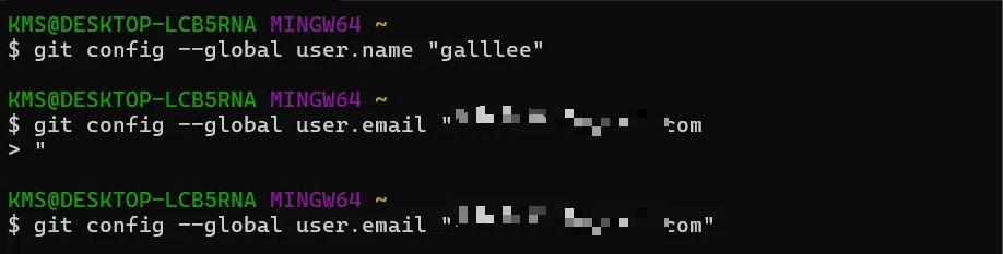 git config --global user.email "이메일"