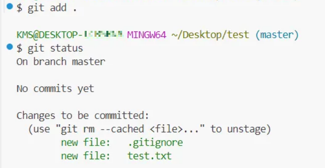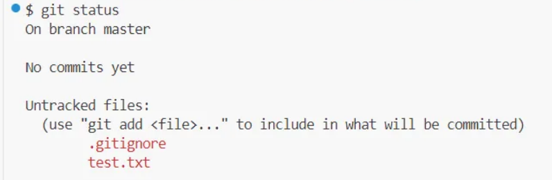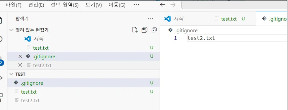 이렇게 저장해주면 이제 test2.txt 파일은 git에서 관리하지 못함