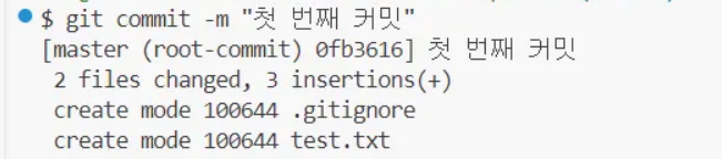 커밋 성공. "첫 번째 커밋"이라는 이 버전이 로컬 저장소에 저장된 것
