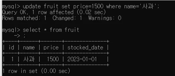 만약 조건을 붙이지 않으면 모든 데이터가 업데이트 됨
