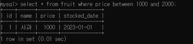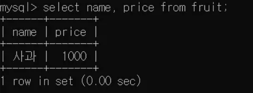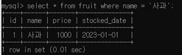 fruit 테이블 내의 모든 데이터를 조회하는 명령어