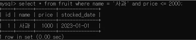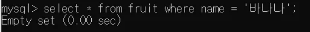 바나나를 조건에 걸면, 이름이 바나나라는 조건에 해당하는 데이터가 없기 때문에 아무 데이터도 조회되지 않음.